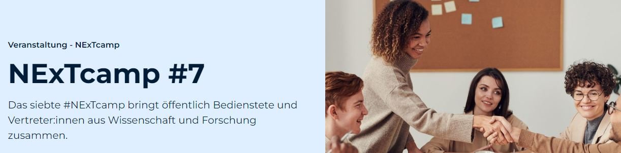 Das NExTcamp soll Menschen zusammenbringen, die gerne in der Verwaltung arbeiten und die Behörde von morgen mitgestalten möchten. Es soll einen Kulturwandel anstoßen und die Vernetzung untereinander nachhaltig unterstützen. Format der Veranstaltung ist ein Barcamp: eine offene Konferenz, deren Inhalte von den Teilnehmenden selbst entwickelt und gestaltet werden.